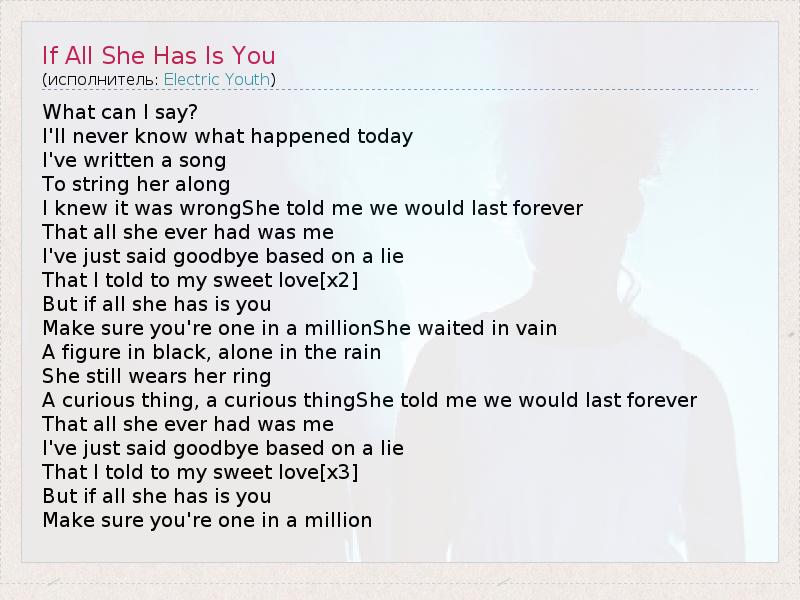 А как ты думаешь, о чем песня "If All She Has Is You" ?