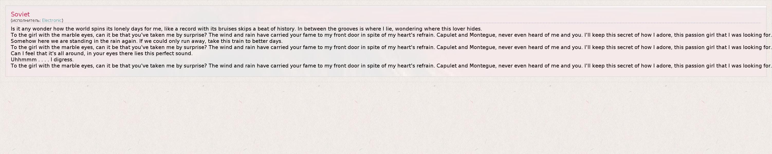 Тамада .com/radio_magic_dreams  ТАМАДА (Dj Crazy Blast & Serjio Lacosta Mash  Тамада  «Малый повзрослел. Часть 2»  Пьяный дождь (альбом "Малый повзрослел ч.2")  Я такой для них уебок Siemens, но  МОТ - Когда исчезнет слово