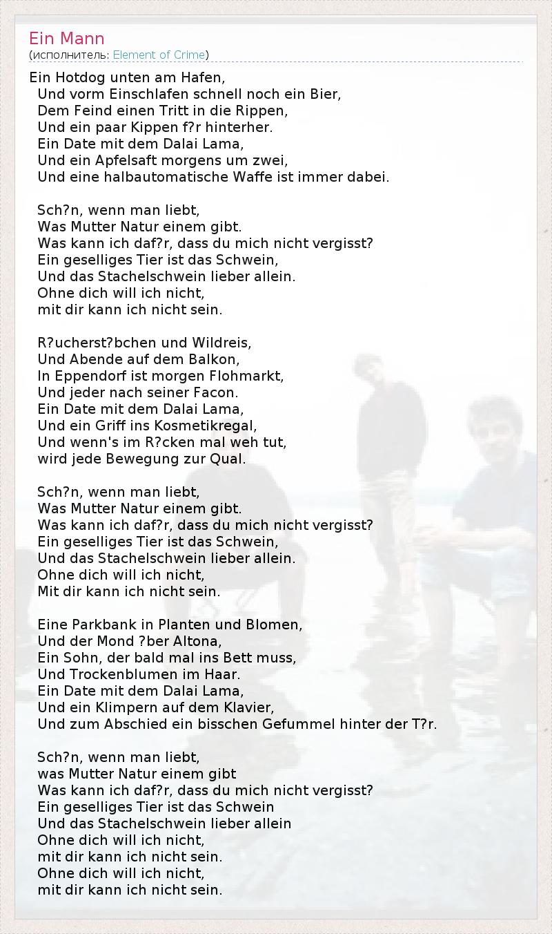 А как ты думаешь, о чем песня "Ein Mann" ?
