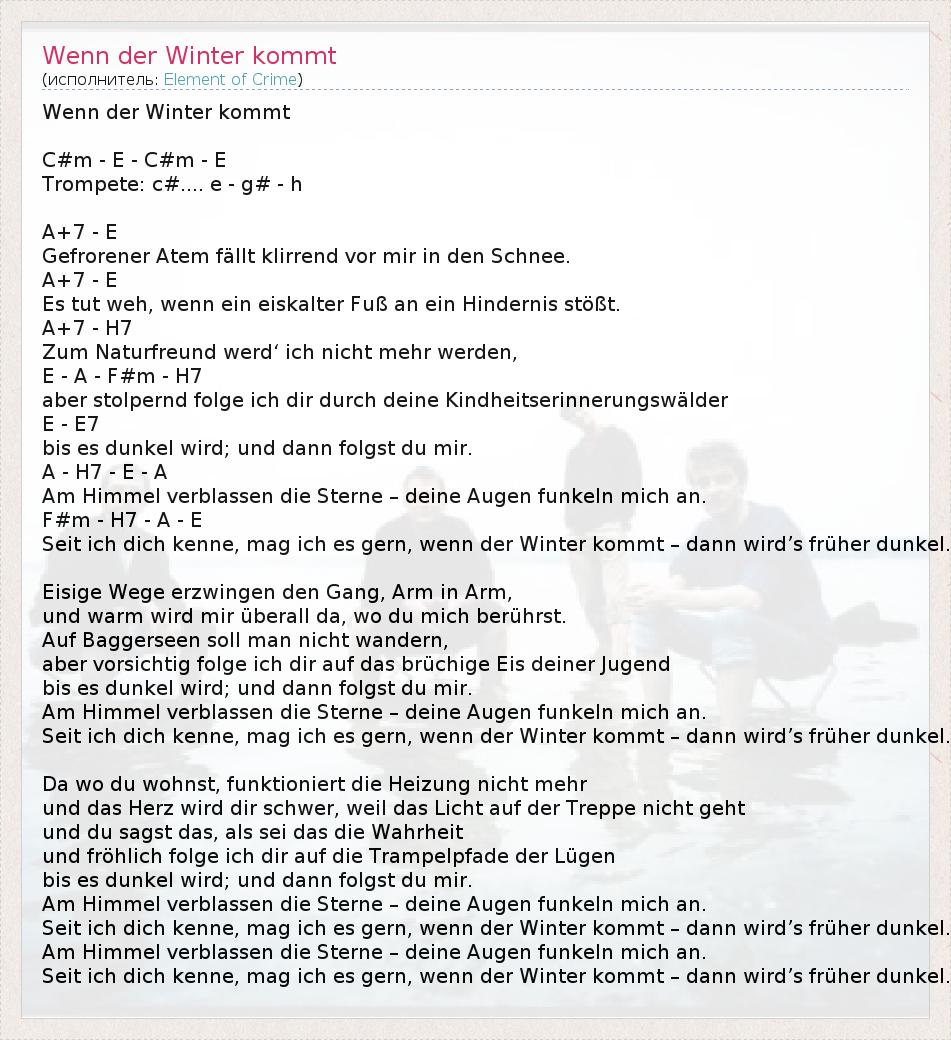 А как ты думаешь, о чем песня "Wenn der Winter kommt" ?