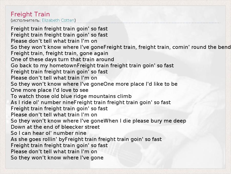 So they won't know where I've goneFreight train, freight train, comin' round the bend