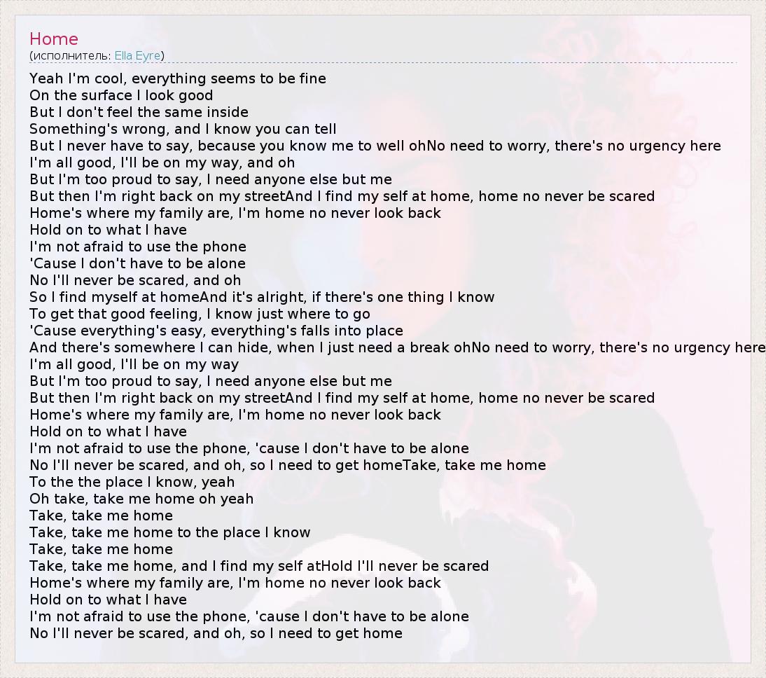 No I'll never be scared, and oh, so I need to get homeTake, take me home