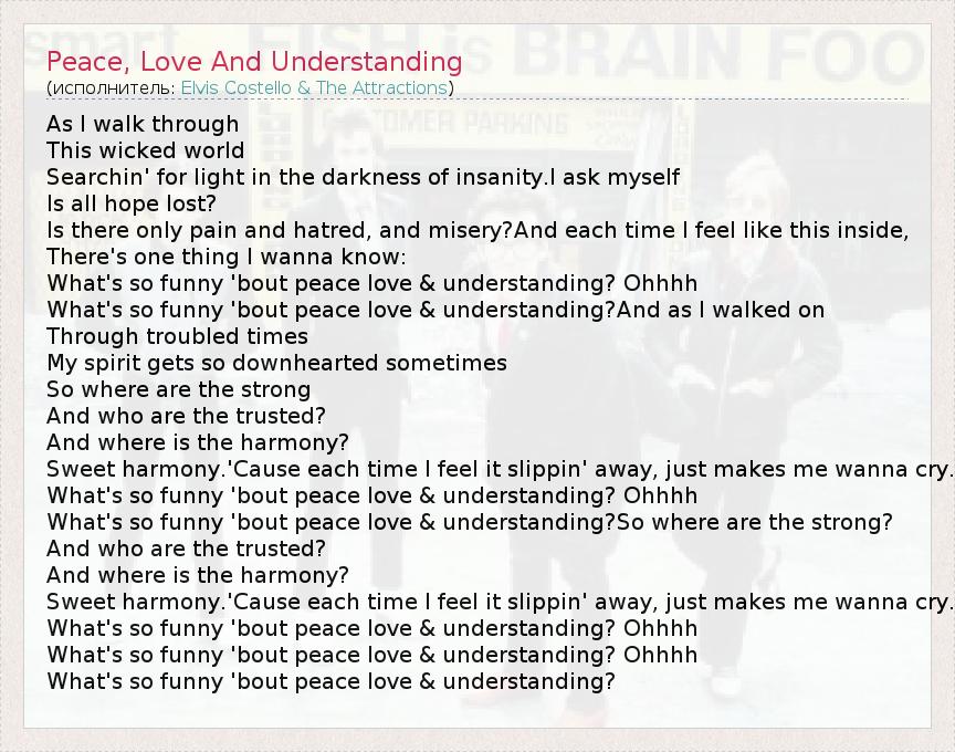А как ты думаешь, о чем песня "Peace, Love And Understanding" ?