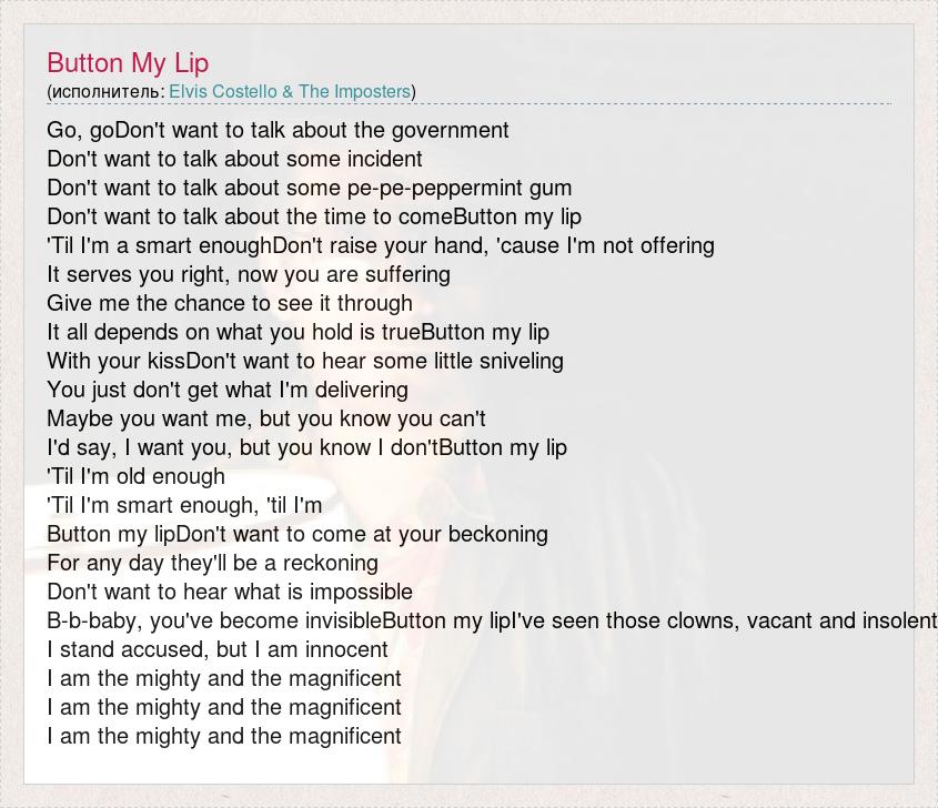А как ты думаешь, о чем песня "Button My Lip" ?