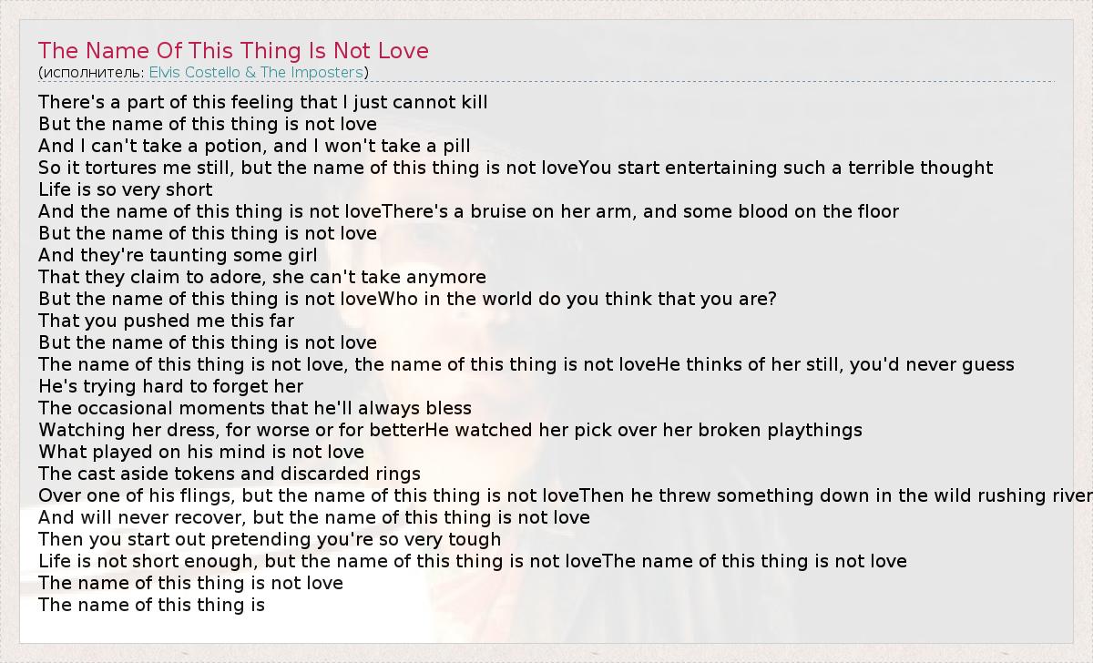 А как ты думаешь, о чем песня "The Name Of This Thing Is Not Love" ?