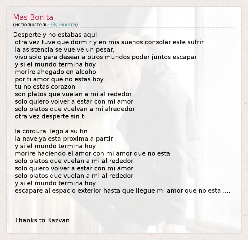 А как ты думаешь, о чем песня "Mas Bonita" ?