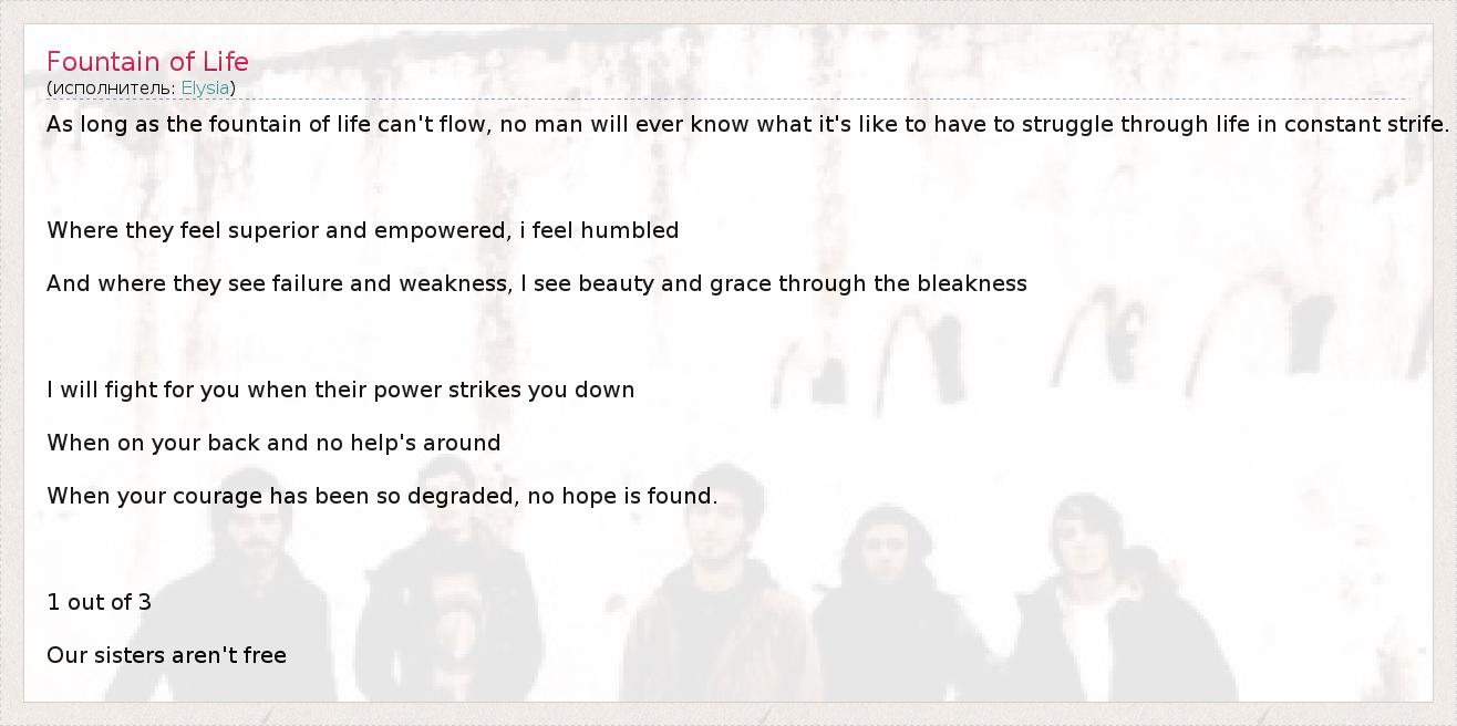 А как ты думаешь, о чем песня "Fountain of Life" ?