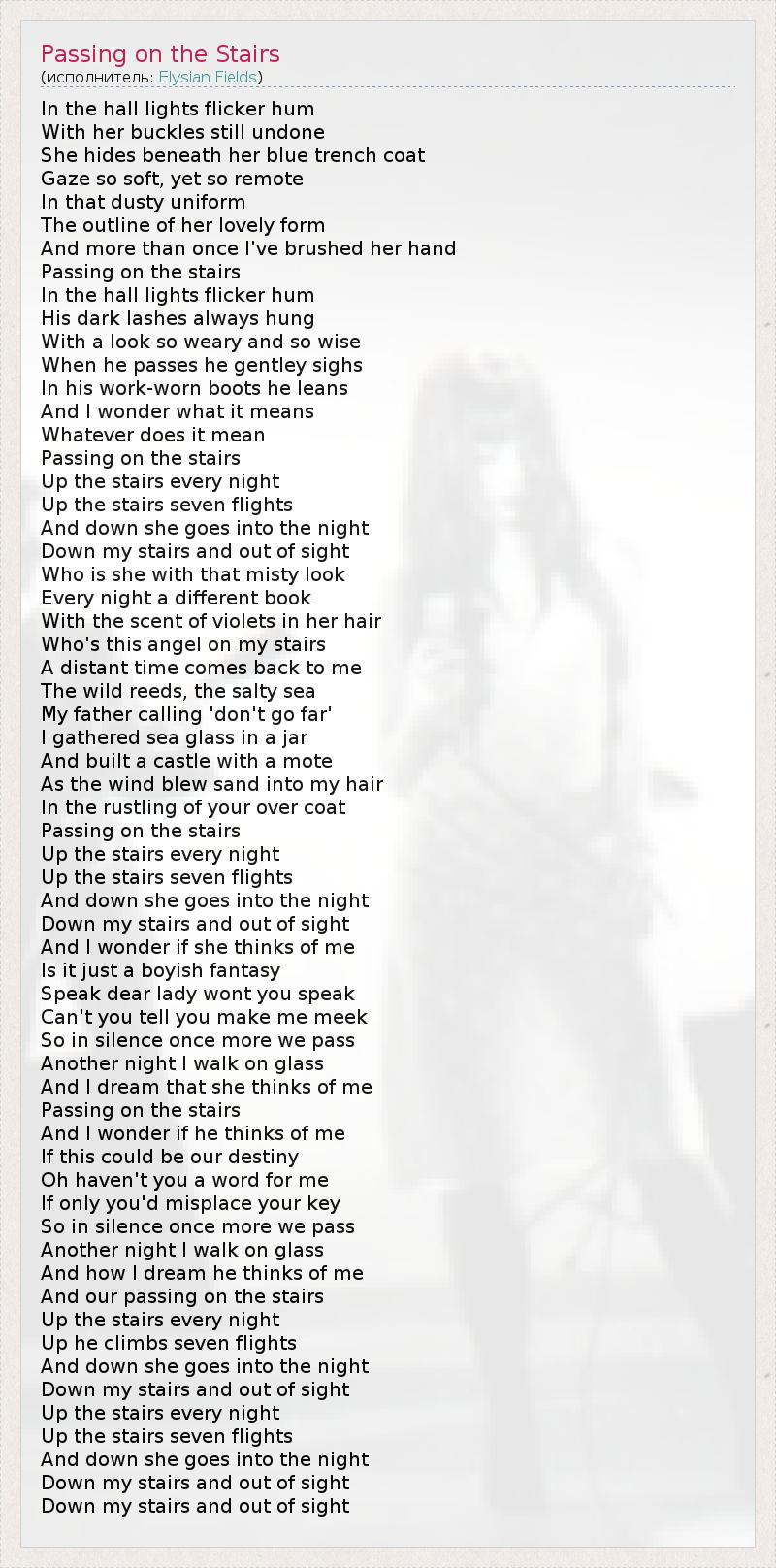 А как ты думаешь, о чем песня "Passing on the Stairs" ?
