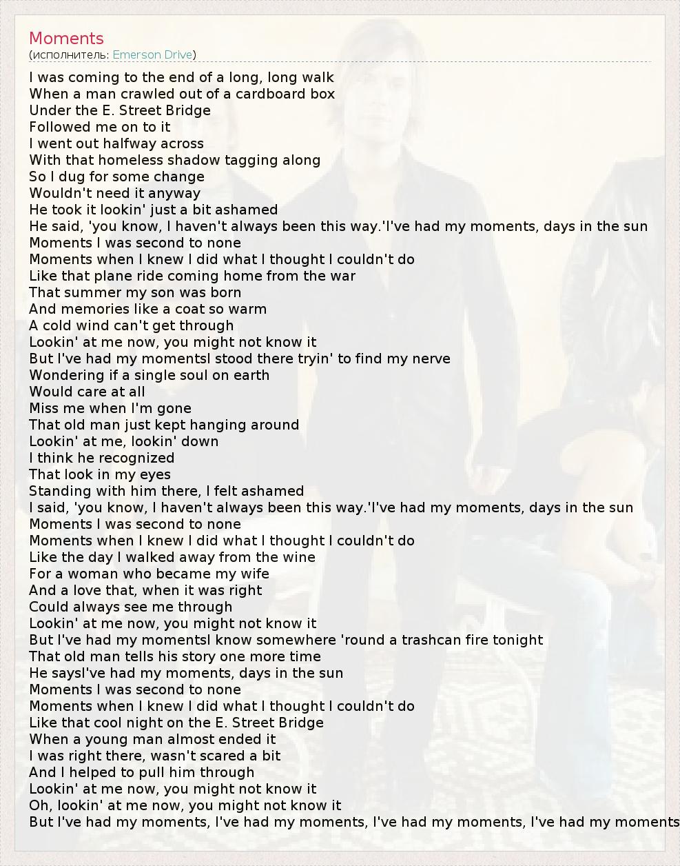 But I've had my moments, I've had my moments, I've had my moments, I've had my moments