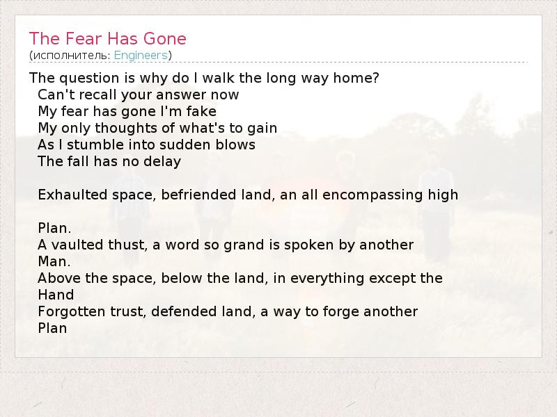 А как ты думаешь, о чем песня "The Fear Has Gone" ?