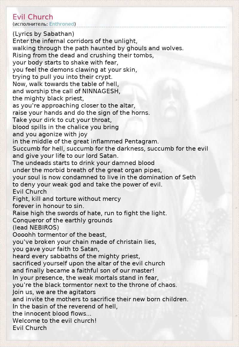 Это интересно:Существует 2 исполнителя с названием Enthroned.Enthroned (BEL), Black MetalПроект Enthroned был создан в 1993 году басистом Сабатаном и барабанщиком Сернунносом после их ухода из Morbid Death и Blaspherion. Завершил комплектование состава гитарист Цебост, уведенный музыкантами из дэт-банды Slanesh. В 1994-м Enthroned выпустили 5-трековую промо-запись, которая привлекла внимание нескольких инди-лейблов. Первой студийной... продолжение