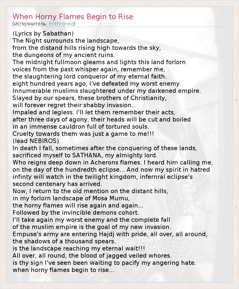 А как ты думаешь, о чем песня "When Horny Flames Begin to Rise" ?