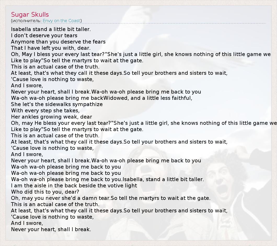 А как ты думаешь, о чем песня "Sugar Skulls" ?