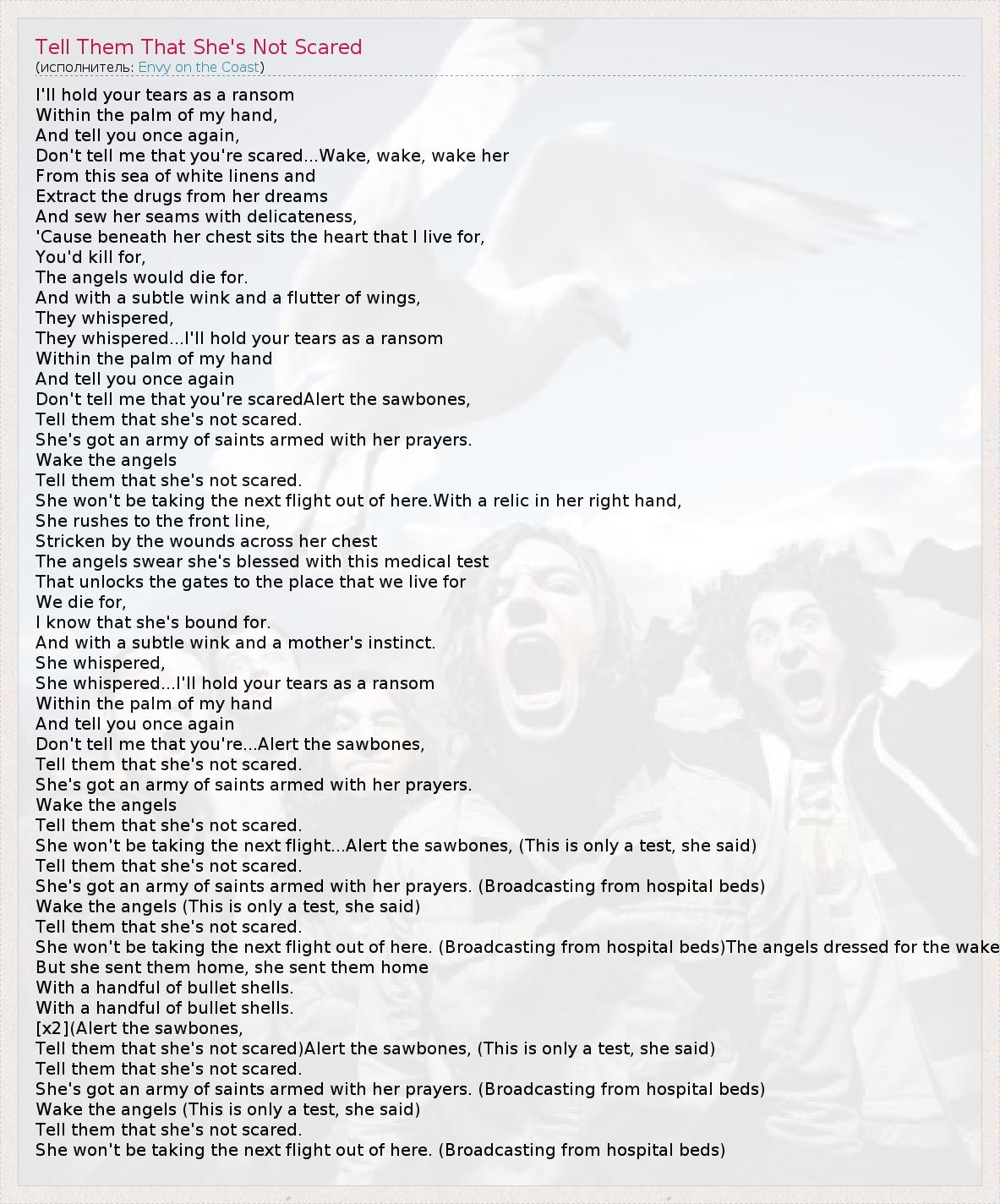 А как ты думаешь, о чем песня "Tell Them That She's Not Scared" ?
