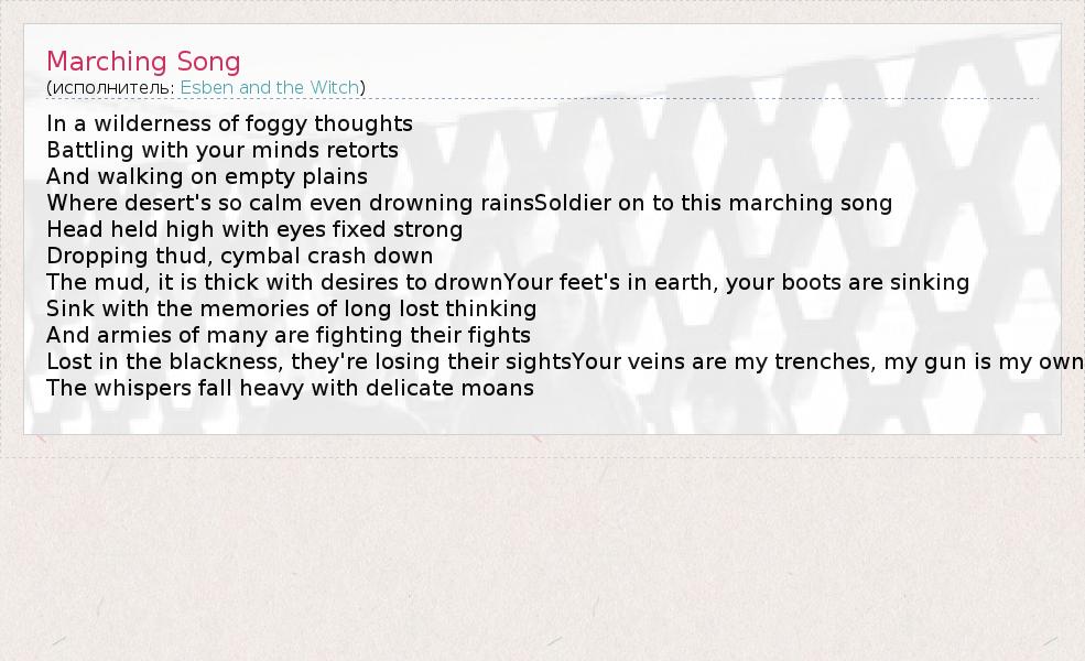 А как ты думаешь, о чем песня "Marching Song" ?