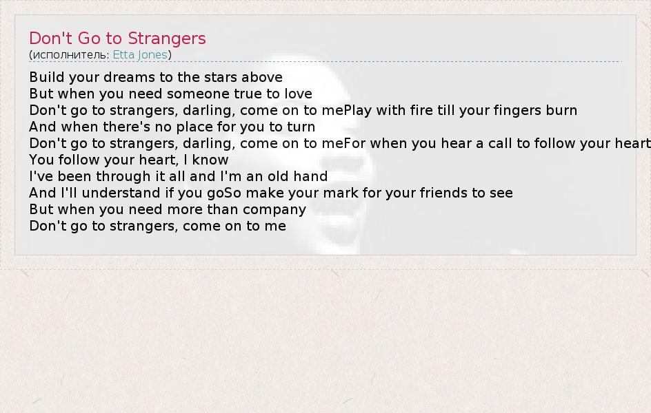А как ты думаешь, о чем песня "Don't Go to Strangers" ?