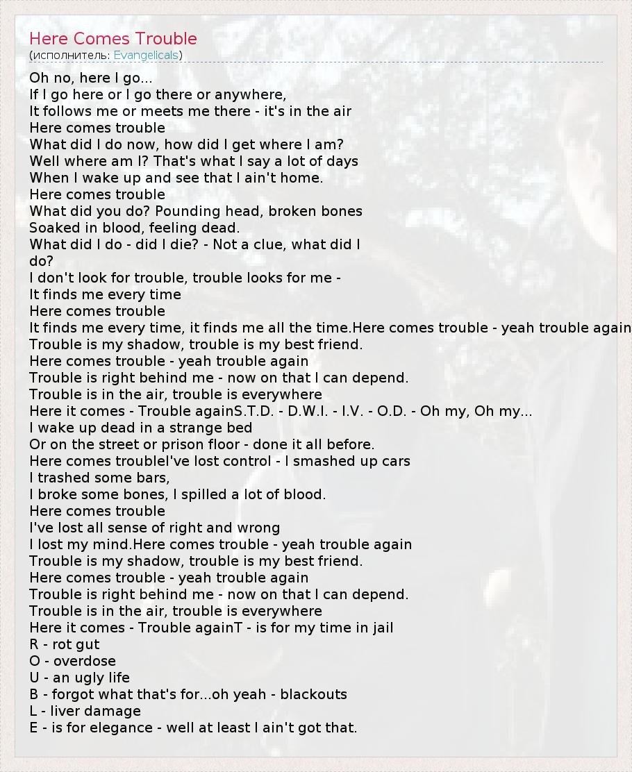 А как ты думаешь, о чем песня "Here Comes Trouble" ?