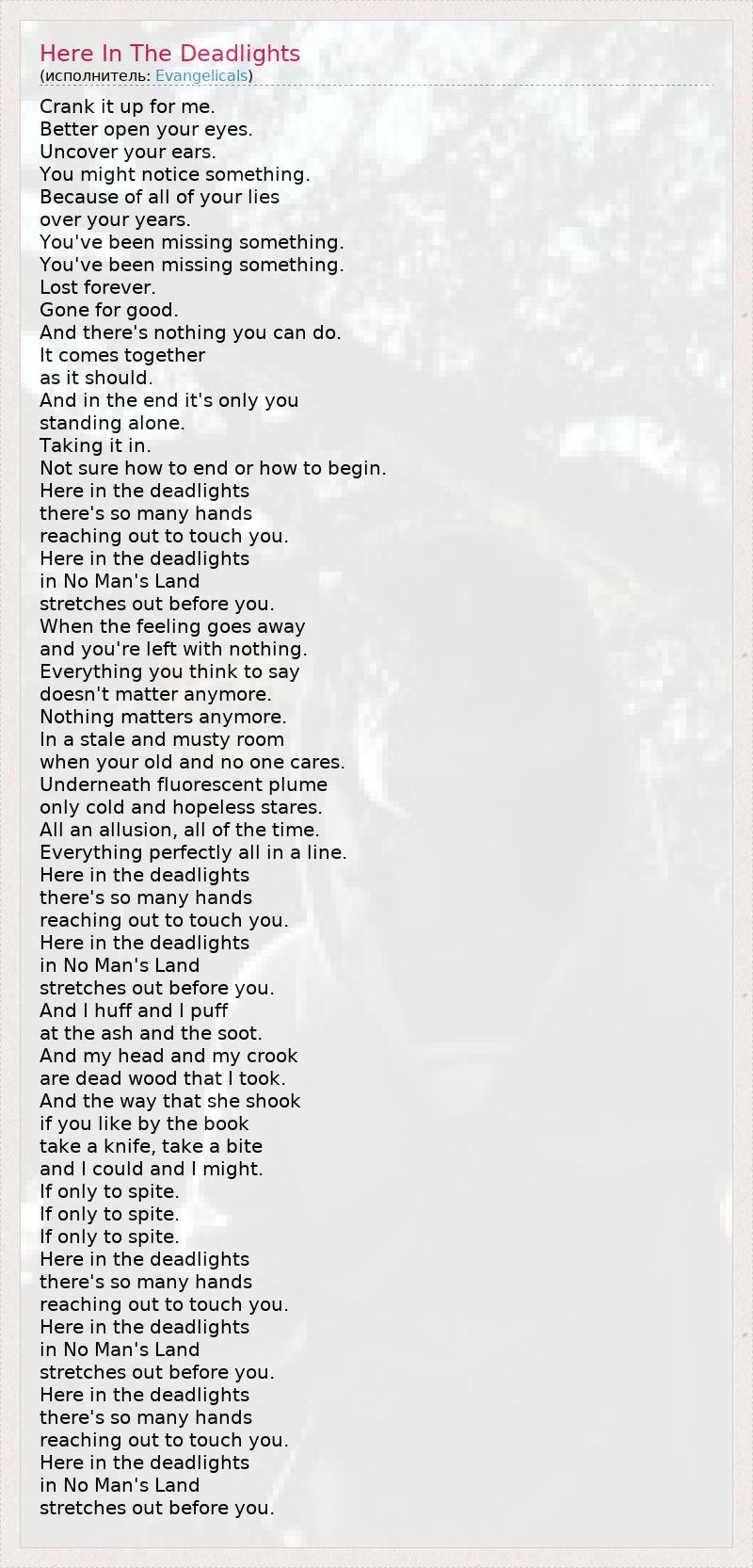 А как ты думаешь, о чем песня "Here In The Deadlights" ?
