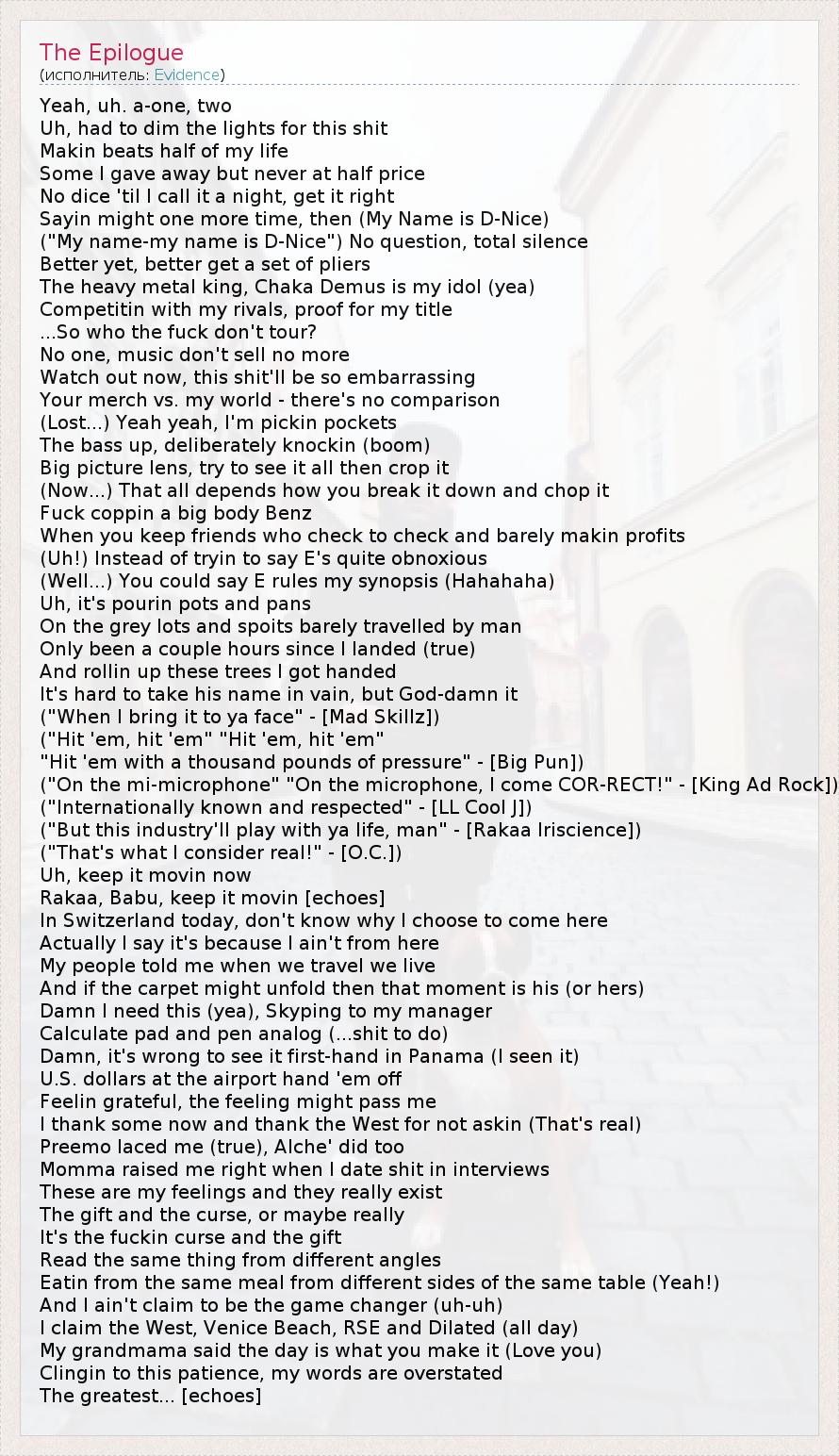 А как ты думаешь, о чем песня "The Epilogue" ?