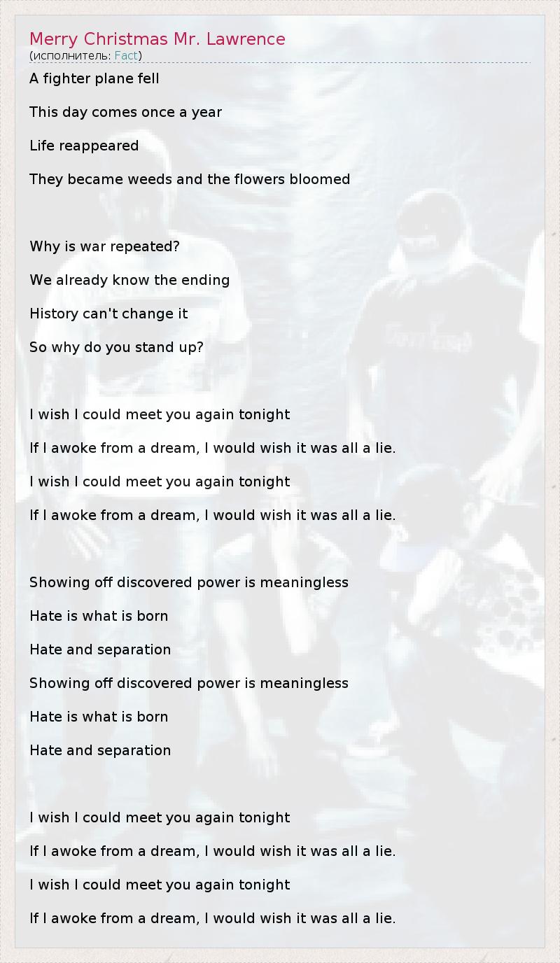 А как ты думаешь, о чем песня "Merry Christmas Mr. Lawrence" ?