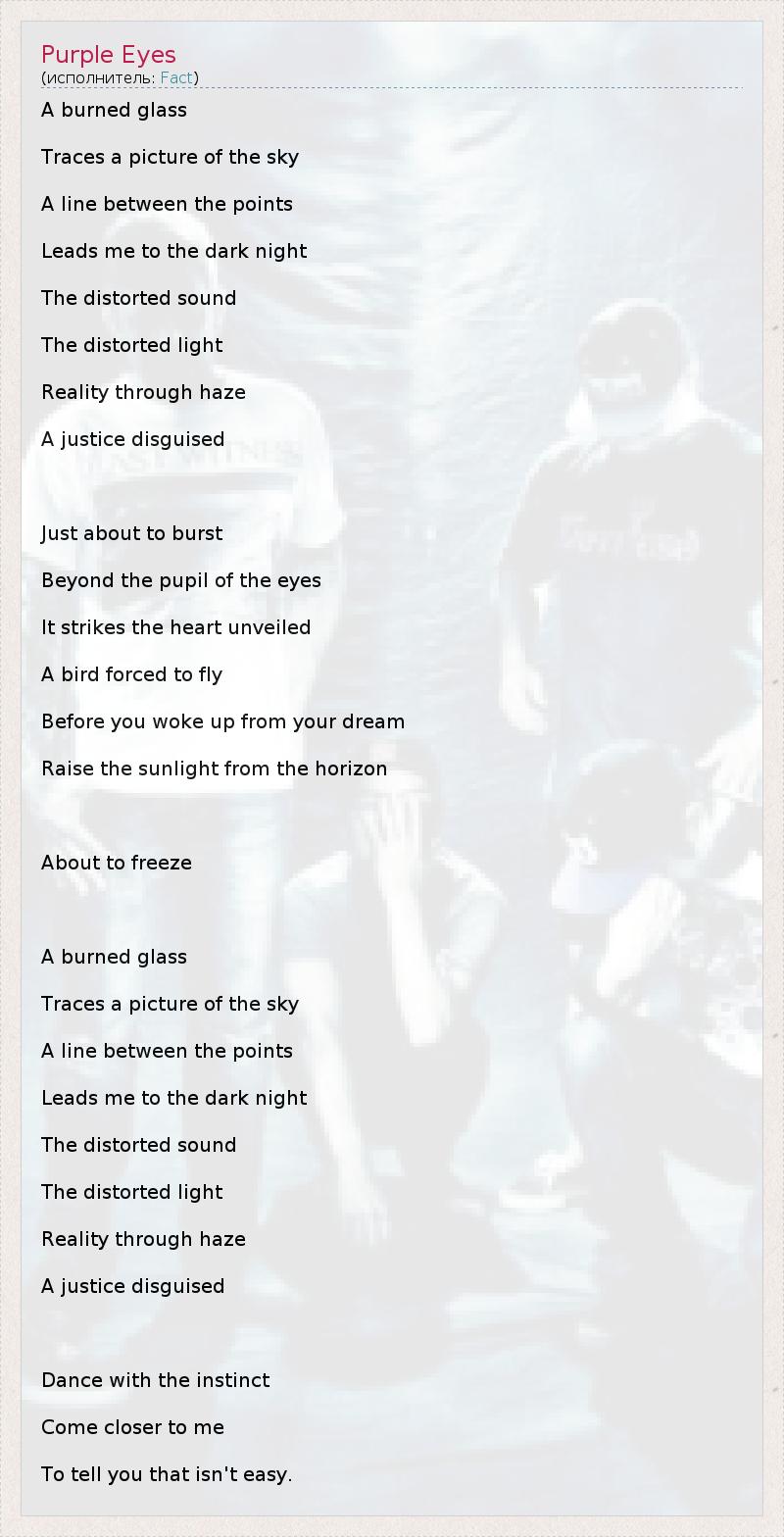 А как ты думаешь, о чем песня "Purple Eyes" ?