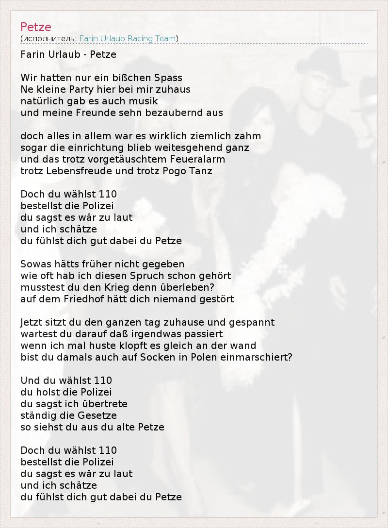 Это интересно:Farin Urlaub Racing Team (FURT) — немецкая рок-группа. Основана Фарином Урлаубом в 2002 году.Первоначально группа была собрана Фарином после выхода его первого сольного альбома «Endlich Urlaub!» для выступления на Top of the Pops. Тогда Урлауб не планировал концертных туров, однако, после выступления он изменил свое решение. Была основана группа Farin Urlaub Racing Team, музыкантов для которой Фарин выбирал, исходя из личного... продолжение