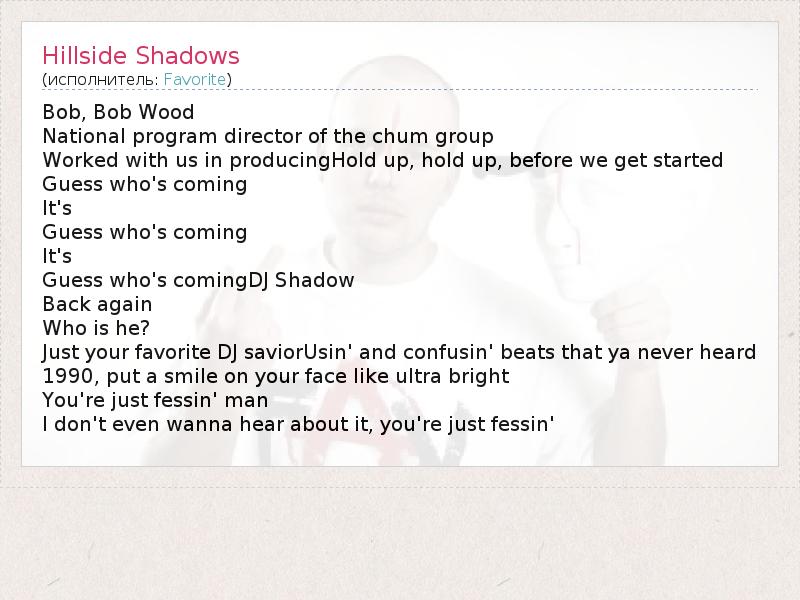 А как ты думаешь, о чем песня "Hillside Shadows" ?