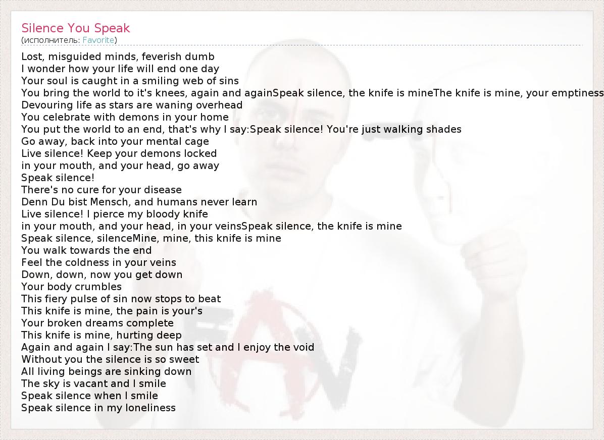 А как ты думаешь, о чем песня "Silence You Speak" ?