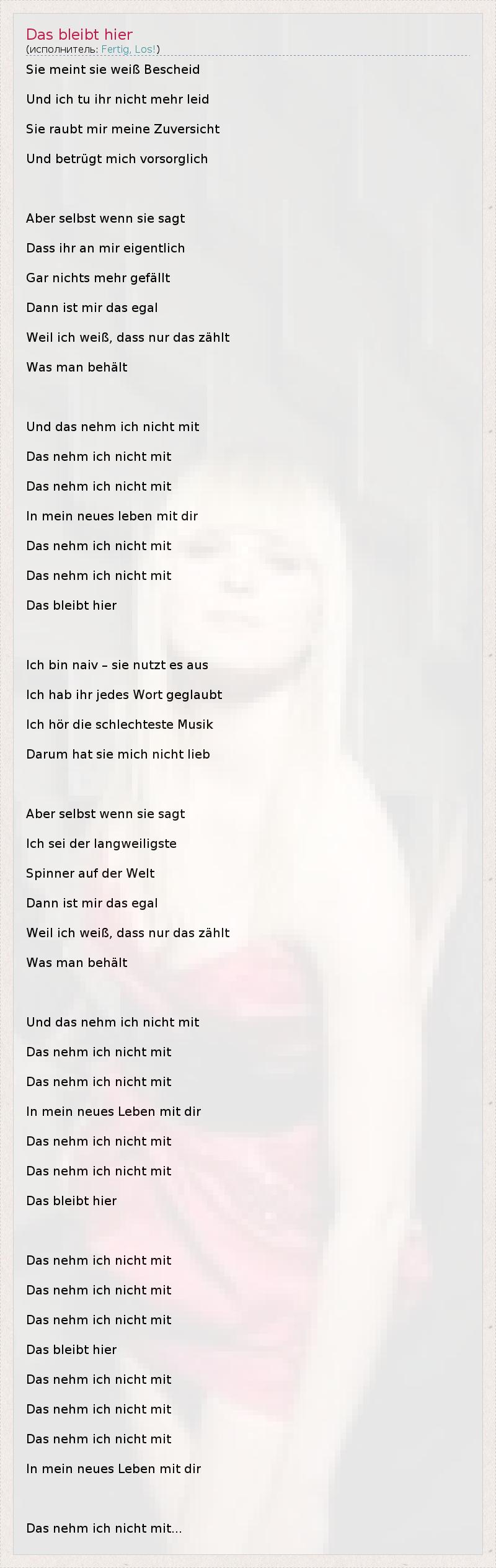 А как ты думаешь, о чем песня "Das bleibt hier" ?