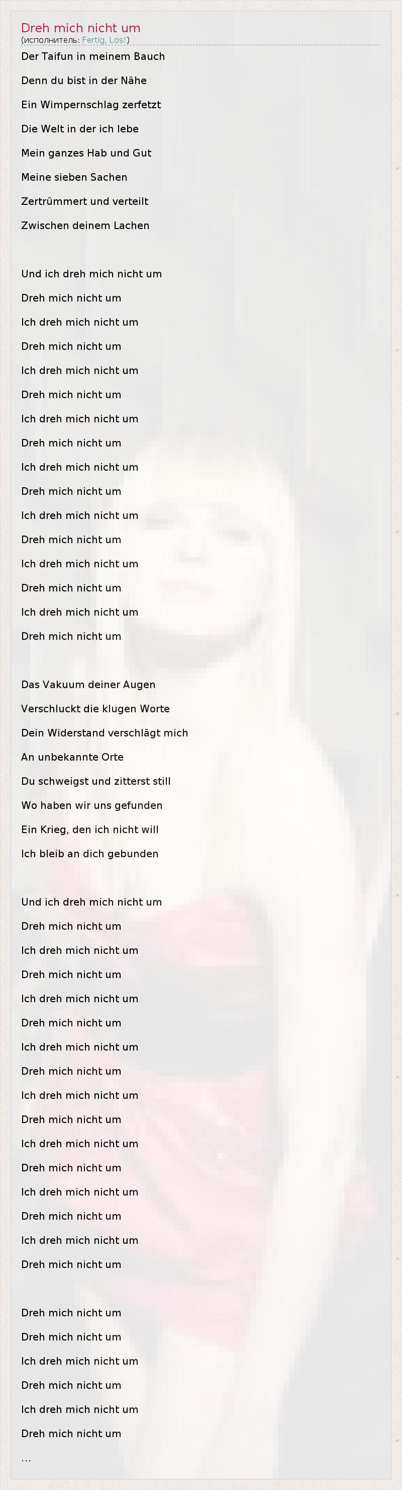 А как ты думаешь, о чем песня "Dreh mich nicht um" ?
