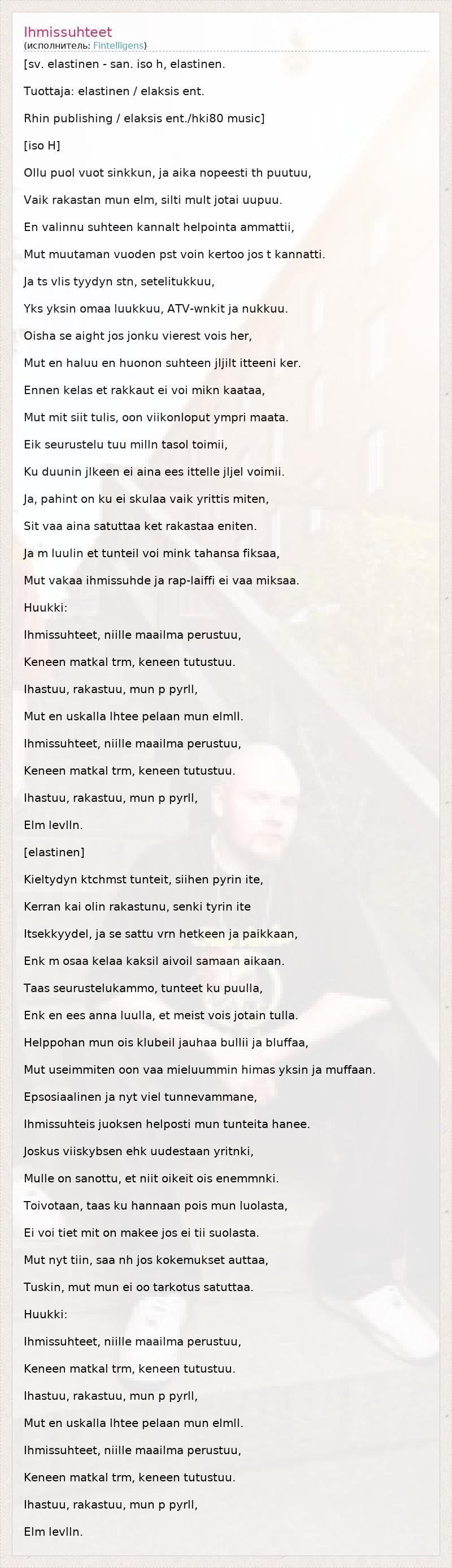 А как ты думаешь, о чем песня "Ihmissuhteet" ?