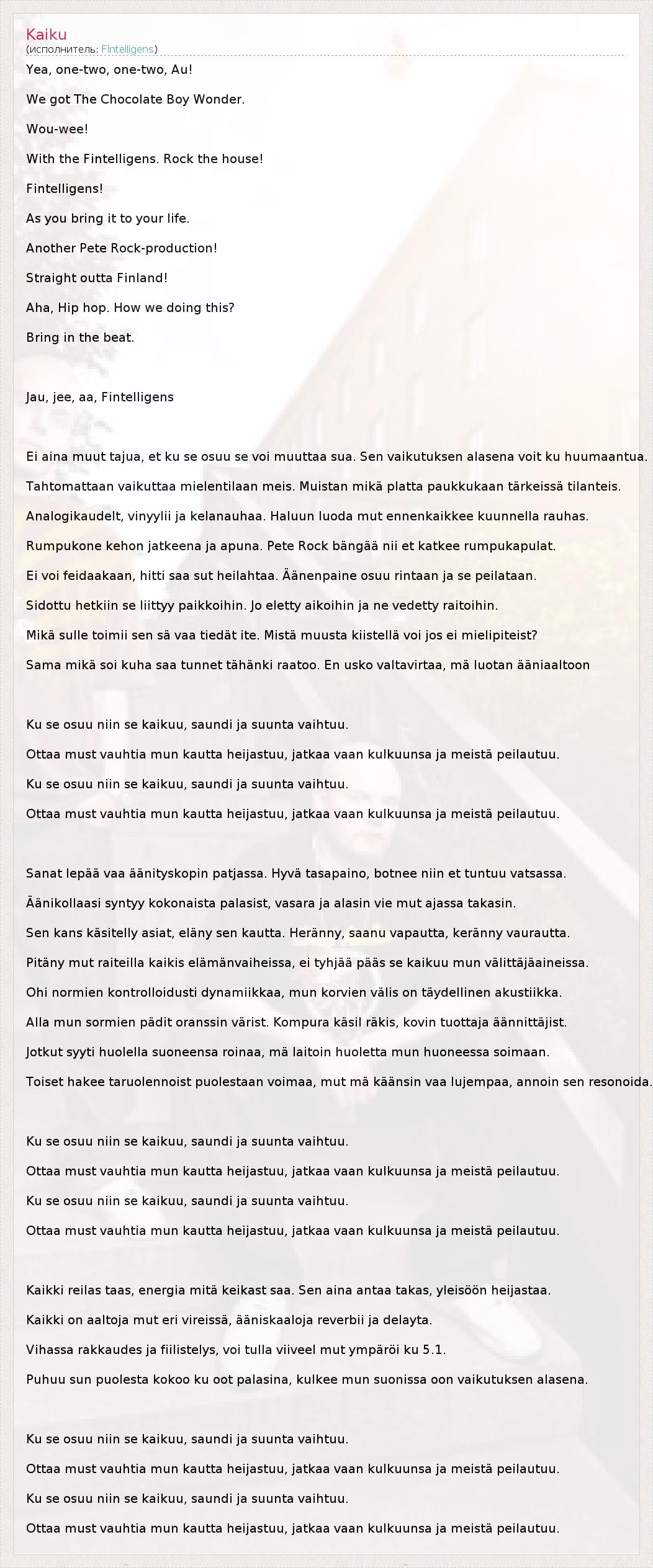 Sama mikä soi kuha saa tunnet tähänki raatoo. En usko valtavirtaa, mä luotan ääniaaltoon