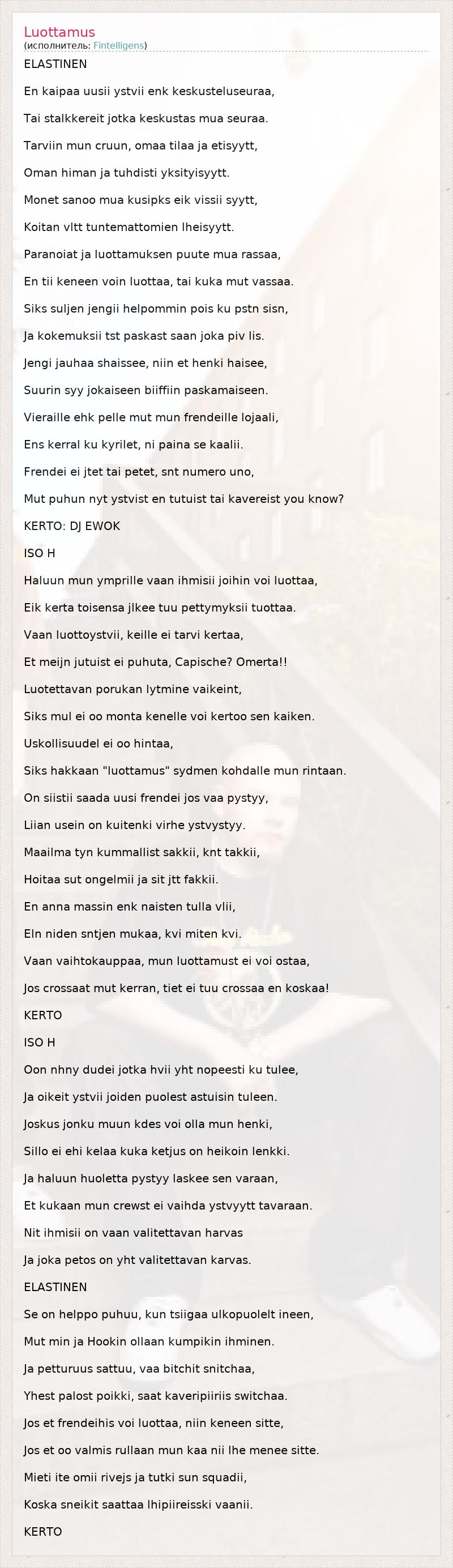 Siks hakkaan "luottamus" sydmen kohdalle mun rintaan.