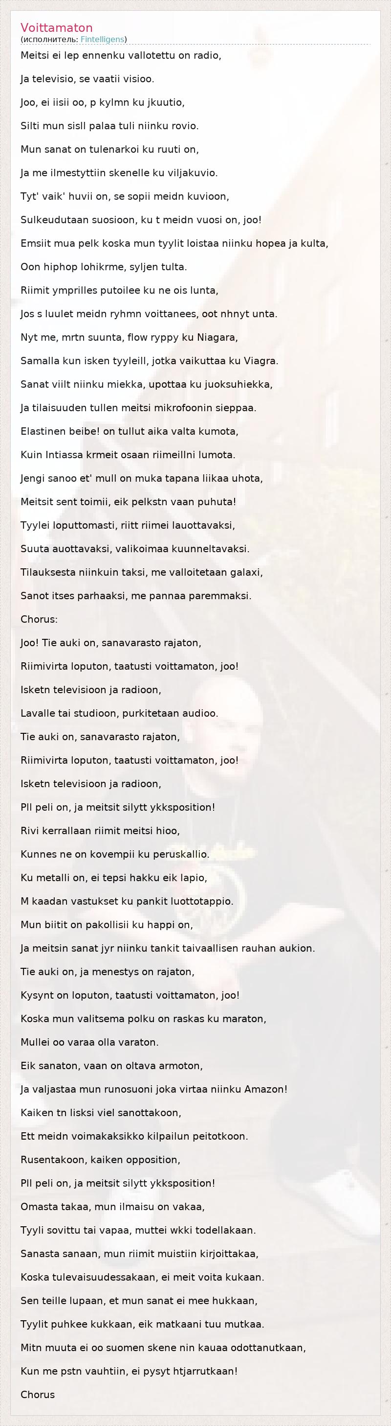 А как ты думаешь, о чем песня "Voittamaton" ?