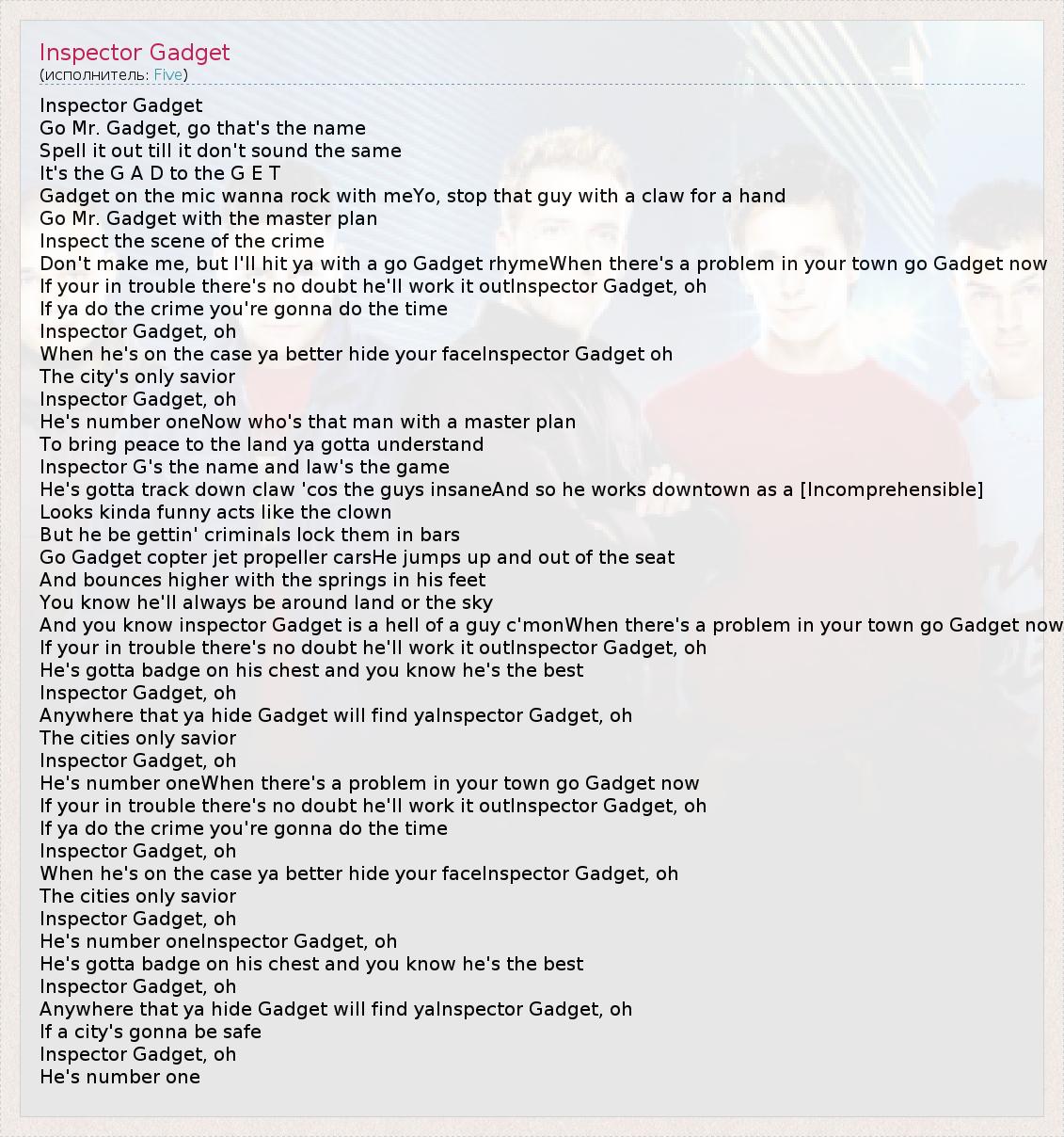 А как ты думаешь, о чем песня "Inspector Gadget" ?