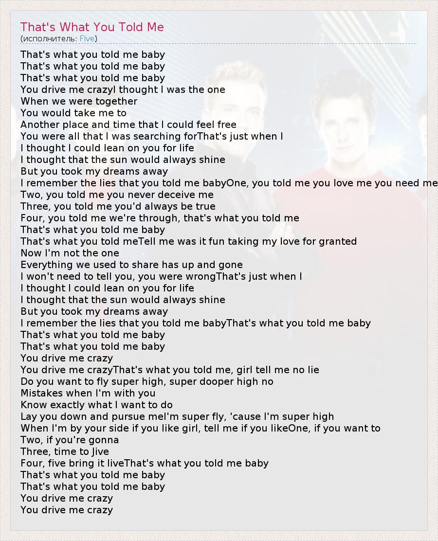 ГлавнаяИсполнителиFiveThat's What You Told Me