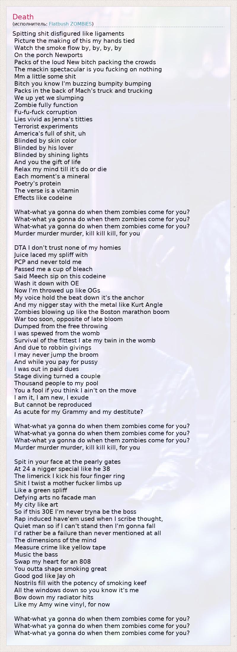 Это интересно:Flatbush ZOMBiES - группа из Бруклина, Нью-Йорк, состоящая из трех человек: Meechy Darko, Zombie Juice и продюсера/рэппера Erick Arc Elliott. Наряду с Pro Era, World's Fair, A$AP Mob, The Underachievers, Smoke DZA, Tanboys - Flatbush Zombies являются ярчайшими представителями Beast Coast движения.В июле 2012 года группа... продолжение