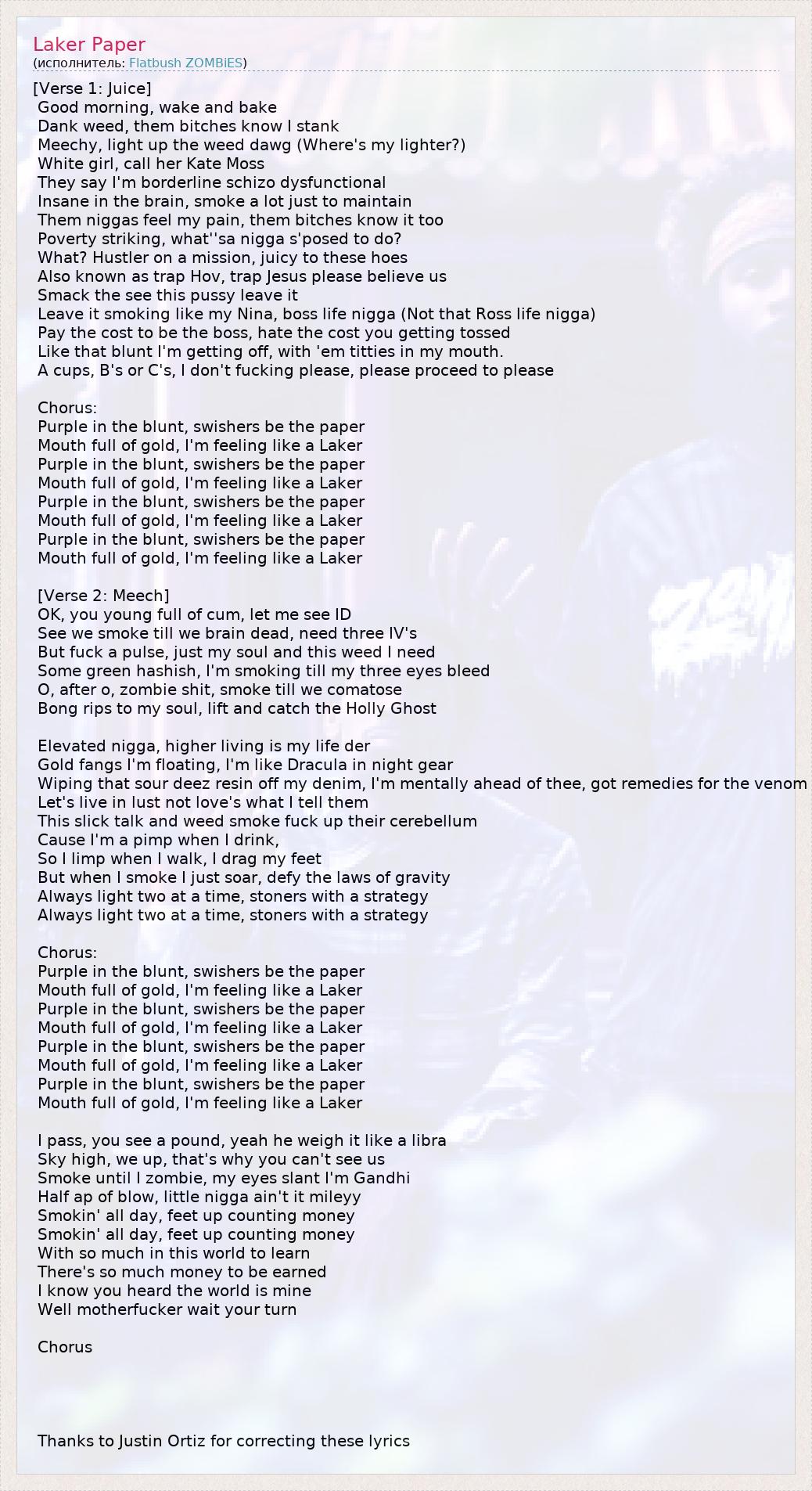 А как ты думаешь, о чем песня "Laker Paper" ?