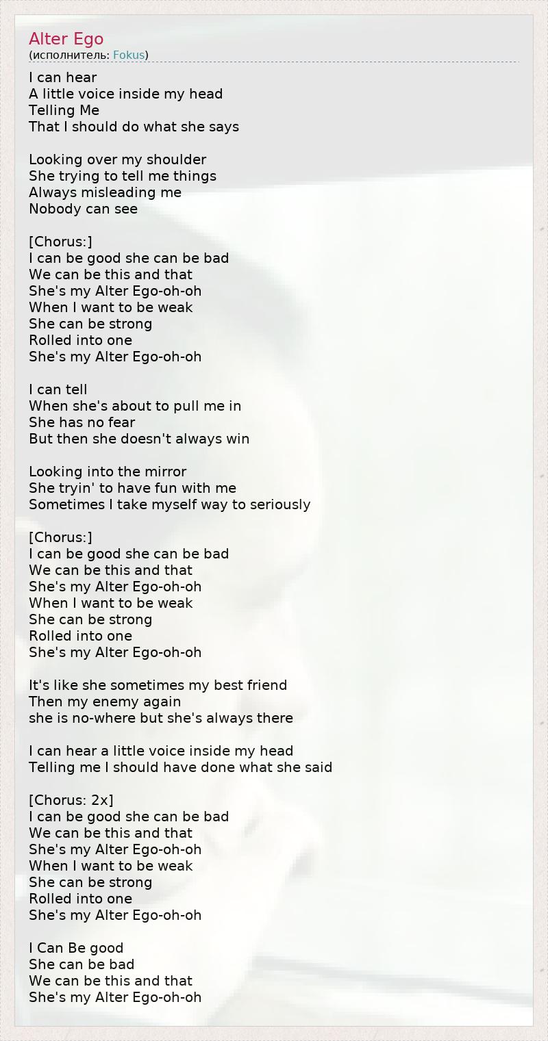 А как ты думаешь, о чем песня "Alter Ego" ?