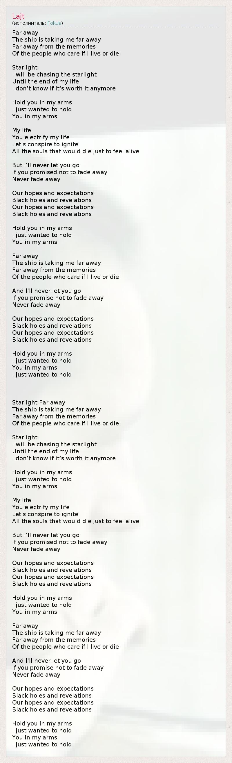 Звёздный свет (перевод Анастасии Поляковой из Нижнего Новгорода) Далеко,