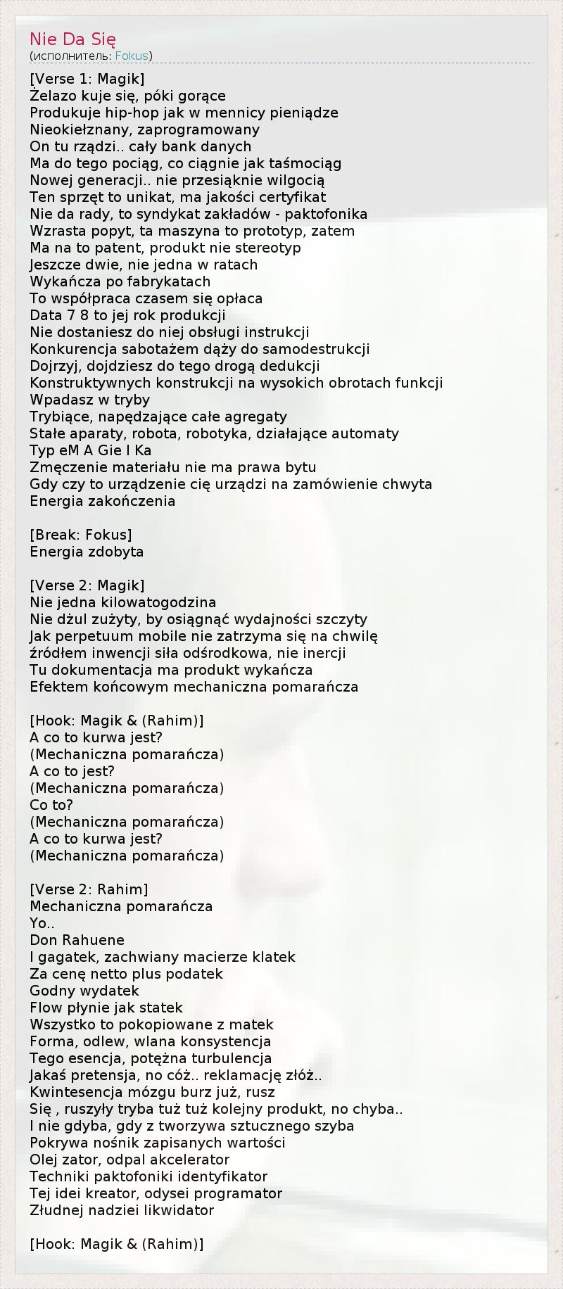 А как ты думаешь, о чем песня "Nie Da Się" ?