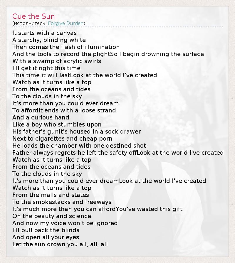 А как ты думаешь, о чем песня "Cue the Sun" ?