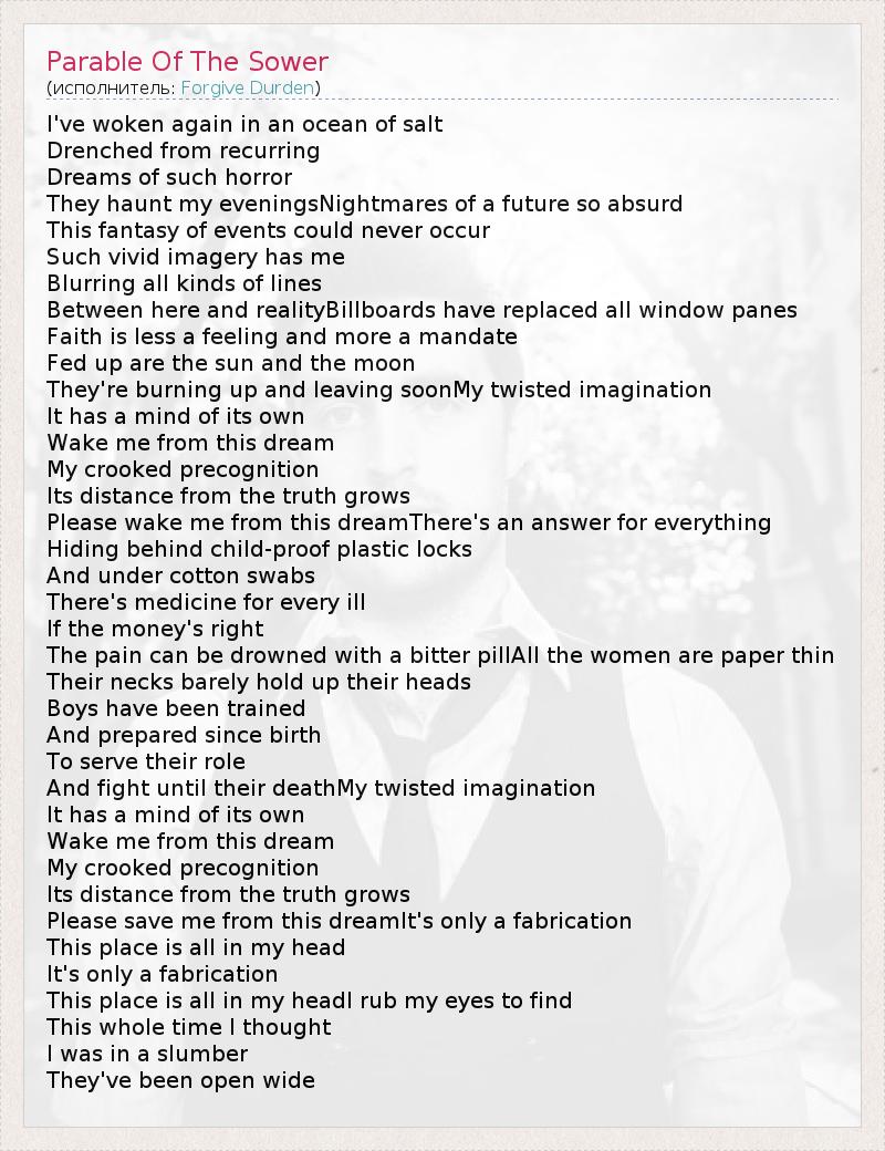 А как ты думаешь, о чем песня "Parable Of The Sower" ?