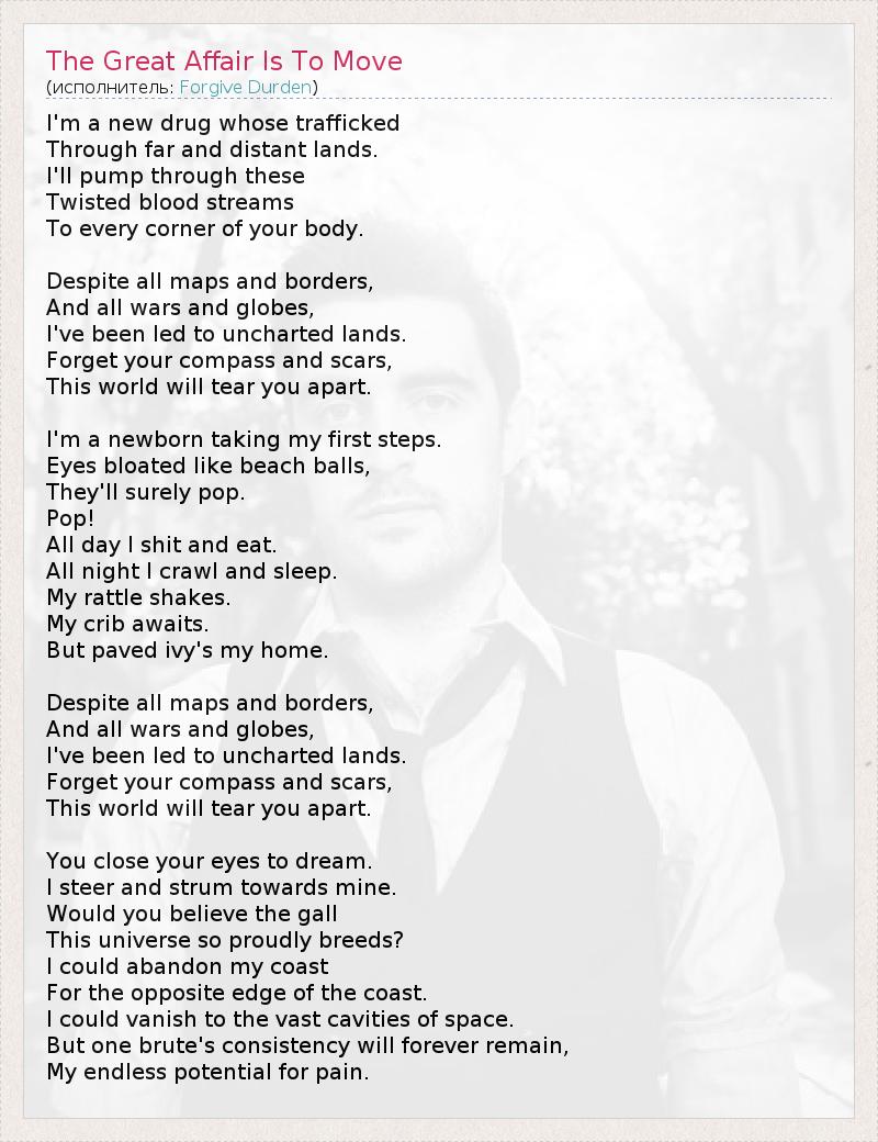 А как ты думаешь, о чем песня "The Great Affair Is To Move" ?