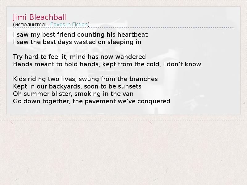 А как ты думаешь, о чем песня "Jimi Bleachball" ?