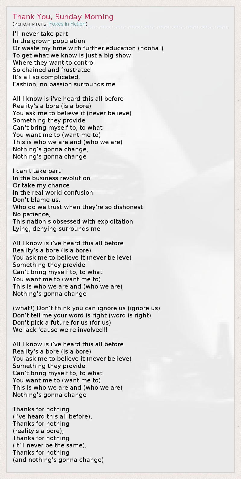 А как ты думаешь, о чем песня "Thank You, Sunday Morning" ?