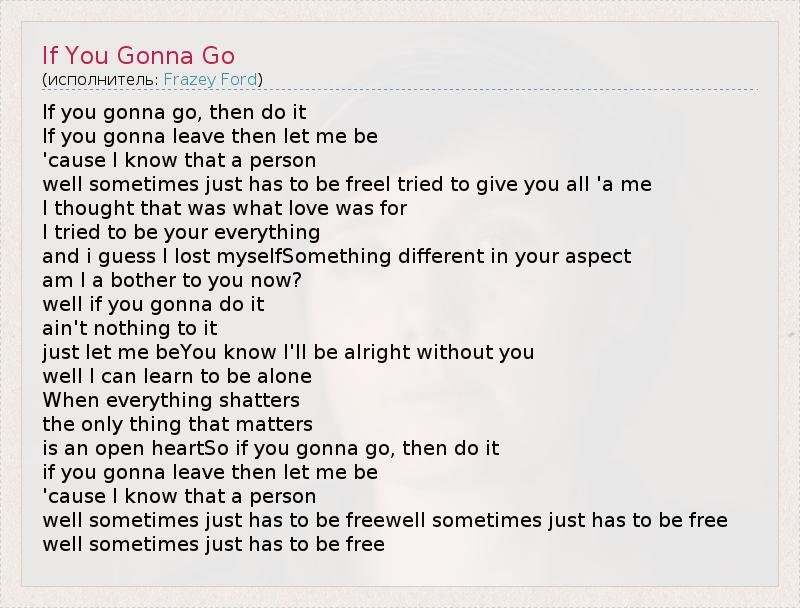 А как ты думаешь, о чем песня "If You Gonna Go" ?