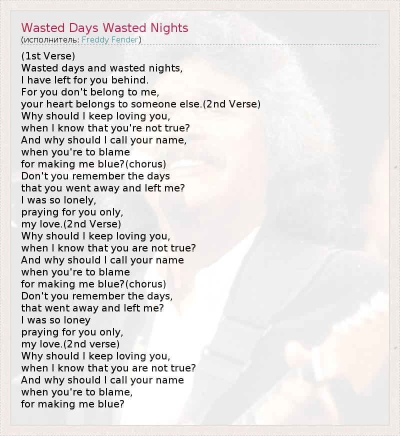 ГлавнаяИсполнителиFreddy FenderWasted Days Wasted Nights