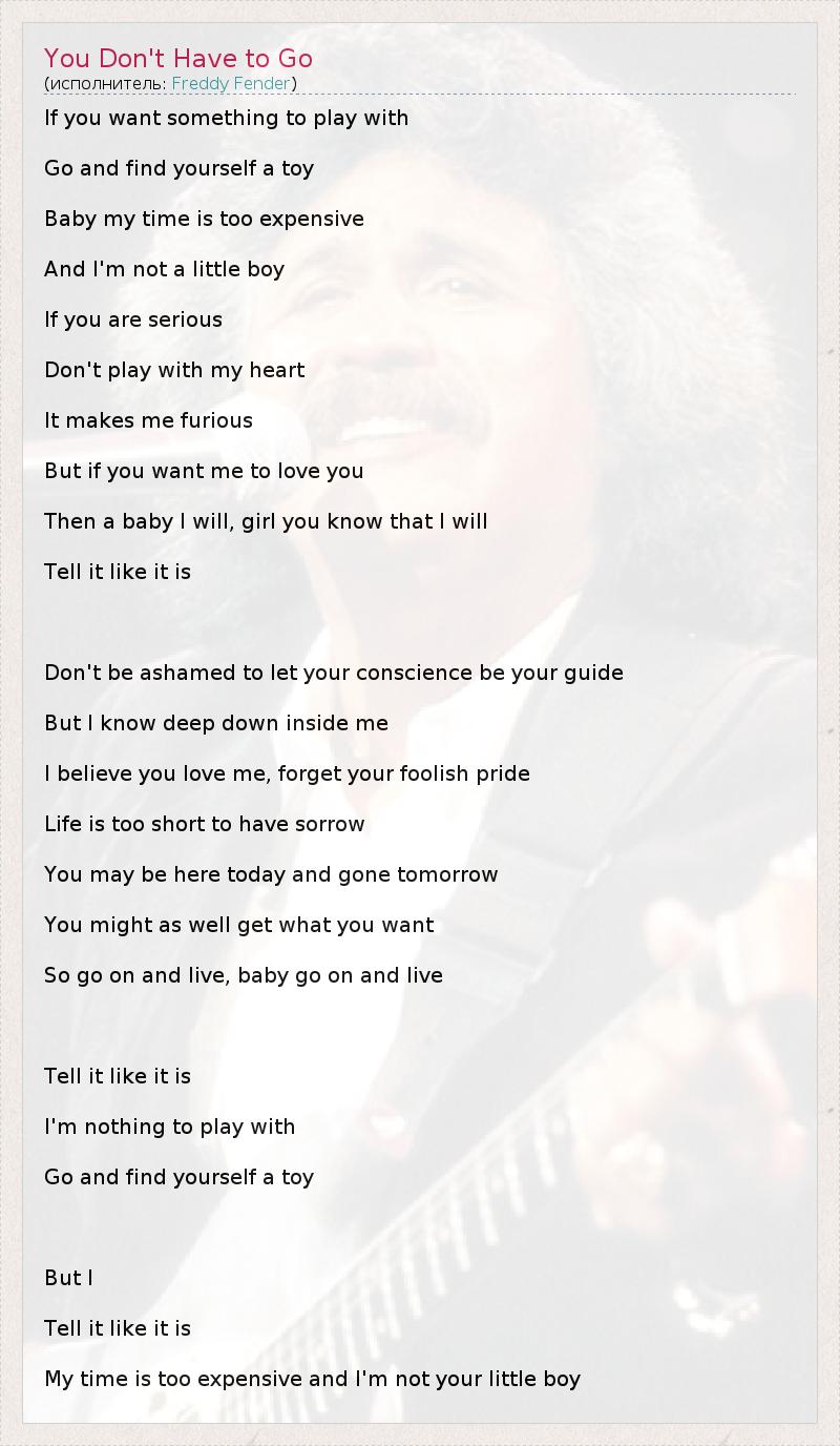 А как ты думаешь, о чем песня "You Don't Have to Go" ?