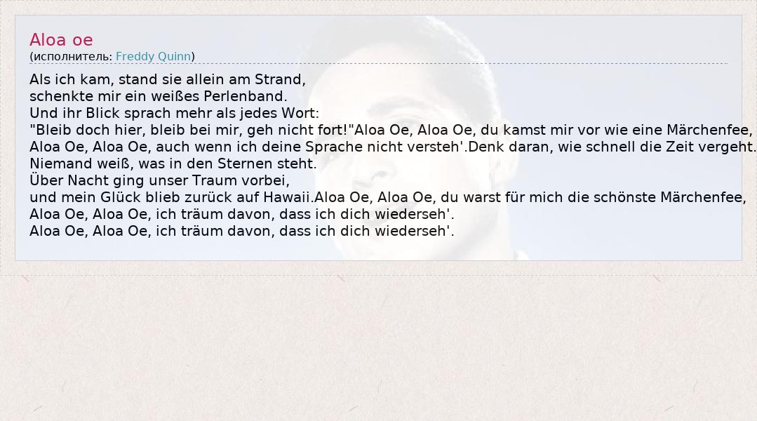Aloa Oe, Aloa Oe, auch wenn ich deine Sprache nicht versteh'.Denk daran, wie schnell die Zeit vergeht.